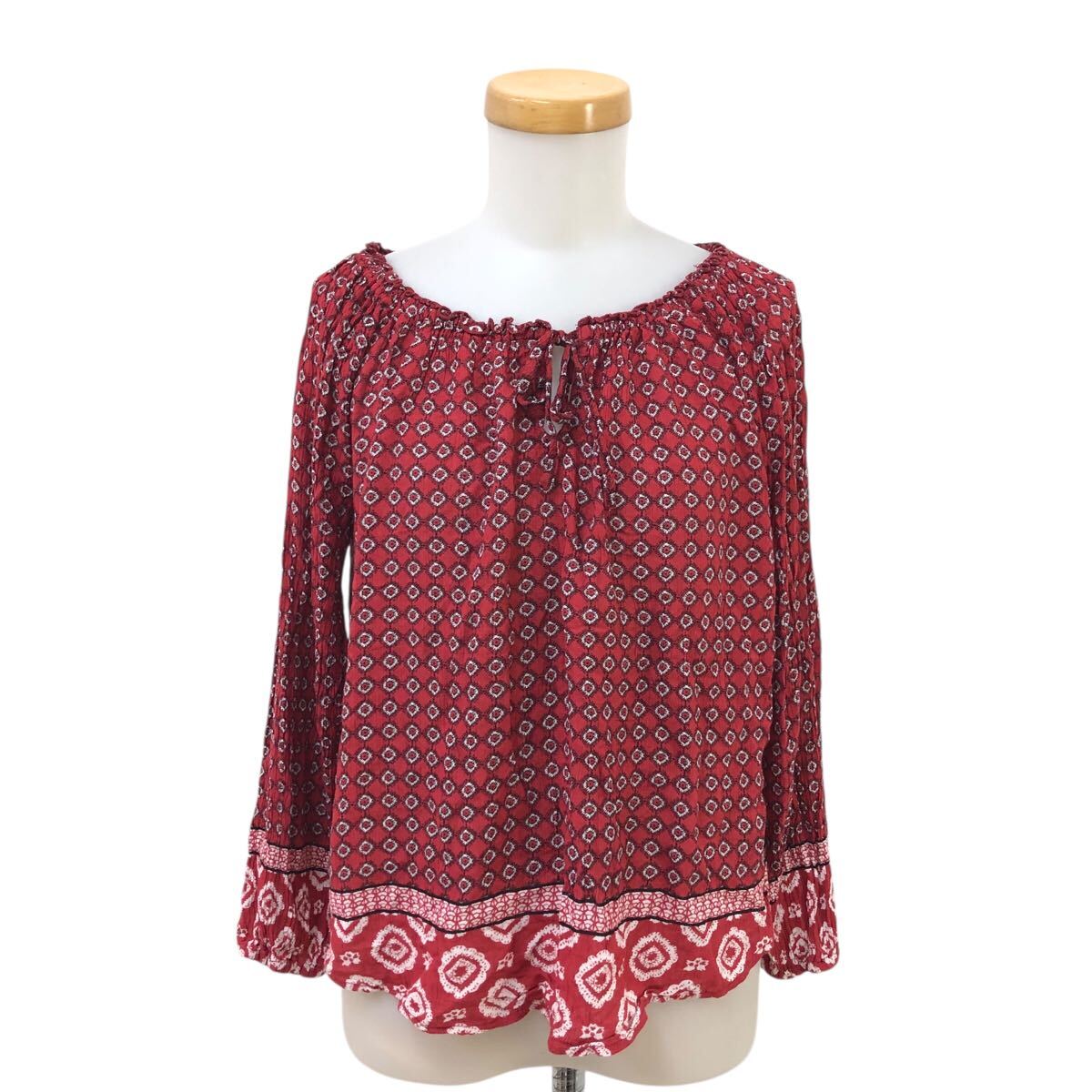 - 9Nm321-50 Abercrombie & Fitch アバクロンビー&フィッチ 総柄 スモックブラウス プルオーバー ブラウス トップス レッド レディース S