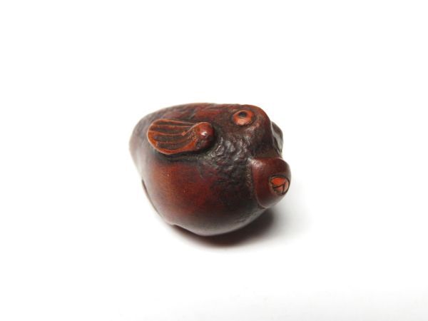 - 【11547】明治期 堤物 木製 フグ 緒締(初品・買取品)