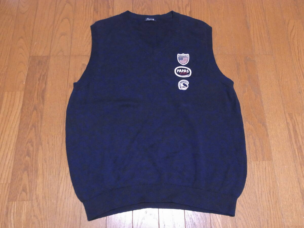- 259-4/papas+/パパスプラス/ワッペン付き/綿麻/Vネック/ニットベスト/LL/ネイビー