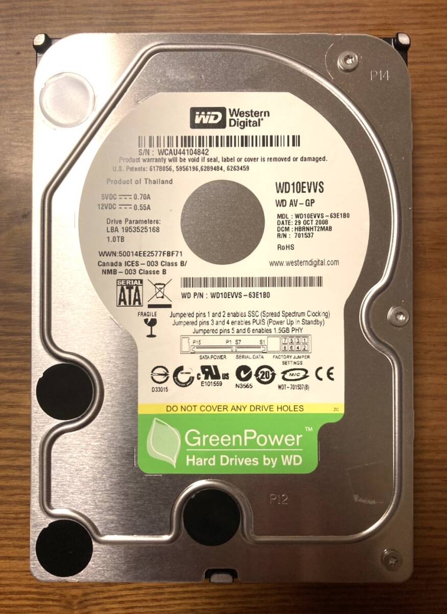> 【状態◎】Western Digital ウェスタンデジタル WD AV-GPシリーズ WD10EVVS 3.5インチ HDD 1TB(AV機器に特化した高信頼HDD)