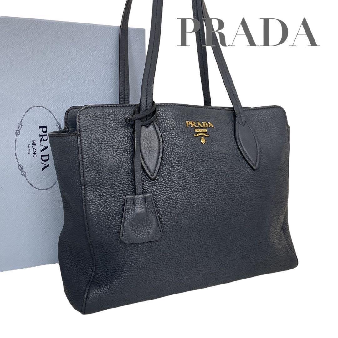 > 希少 プラダ ヴィッテロダイノ トートバッグ 三角ロゴ ネイビー系 5050