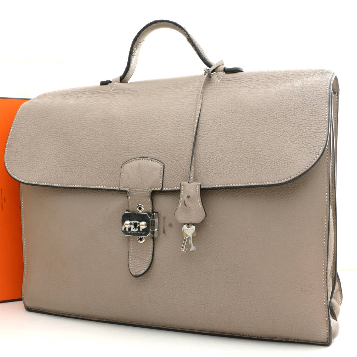 > HERMES エルメス サック ア デペッシュ 41 トリヨンクレマンス エトゥープ シルバー金具 □K刻印 ビジネスバッグ レザー ブリーフケース