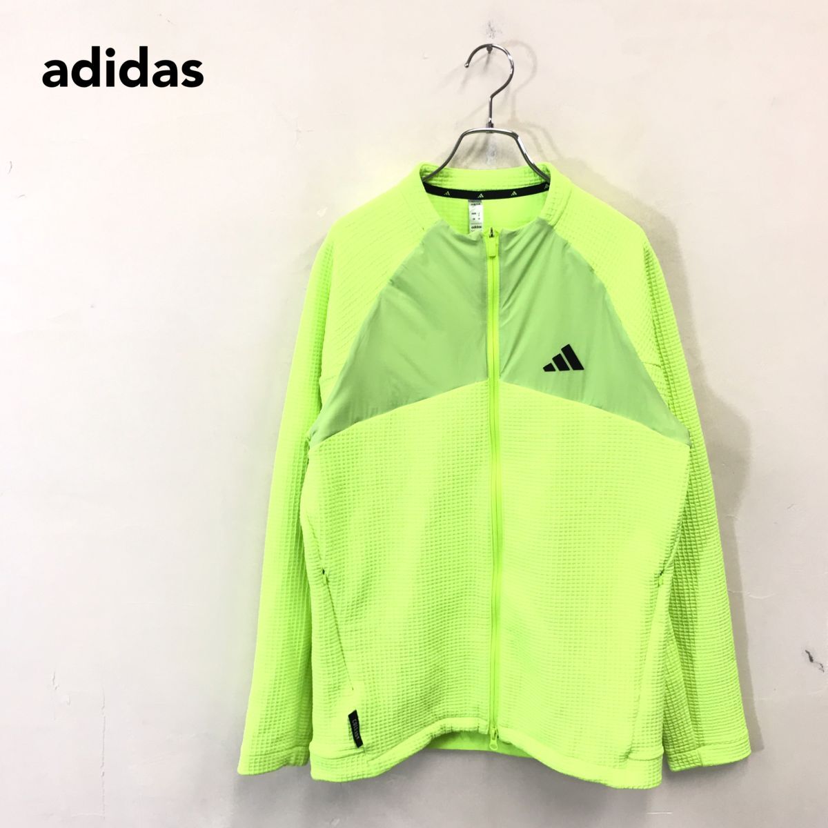 > 2K1421-Q-N◆adidas アディダス COLD.RDY バックグラフィック ジャケット ゴルフ ジップアップ メンズ◆size M 蛍光 黄緑 ポリエステル