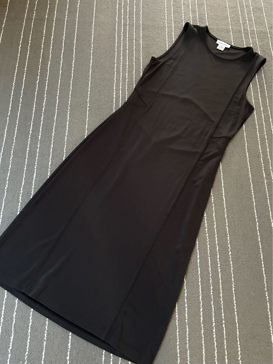 - 送料無料 Calvin Klein カルバンクライン ロングワンピース XS チュニック Iライン 茶 焦茶色 美ライン ワンピース ノースリーブ ロング