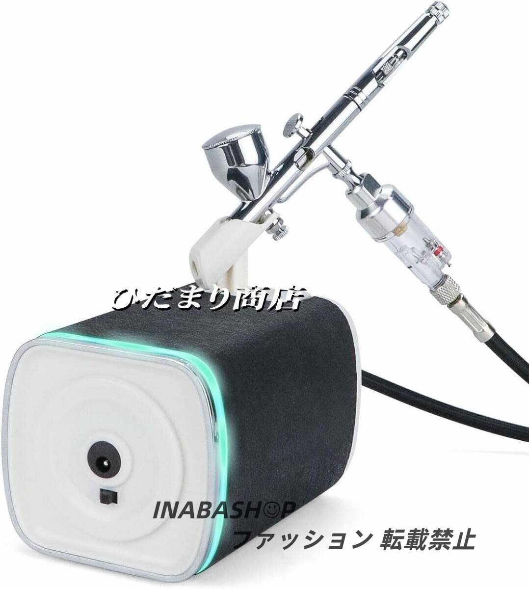 > エアブラシ コンプレッサー 静音 ミニコンプレッサー 3段階エア圧制御 軽量 ダブルアクション 口径0.3mm エアコンプレッサー エアーブラシ
