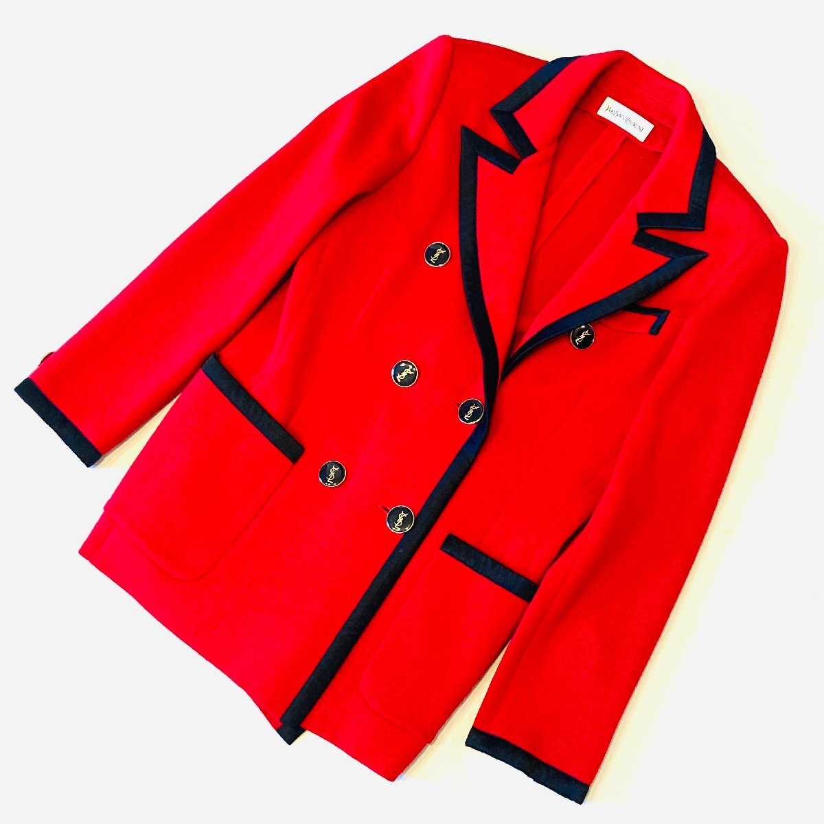 > Yves Saint Laurent イヴサンローラン 日本製 ウール テーラード ジャケット 金釦 レッド/ブラック M ST37A529
