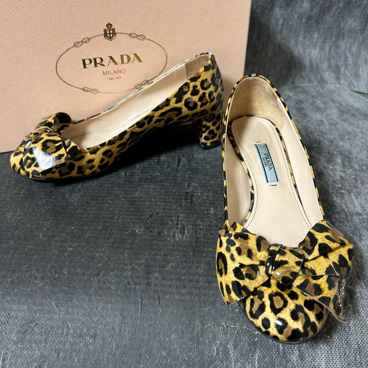 - PRADA プラダ エナメルパンプス レオパード柄 リボンパンプス 36 23cm相当 *EU