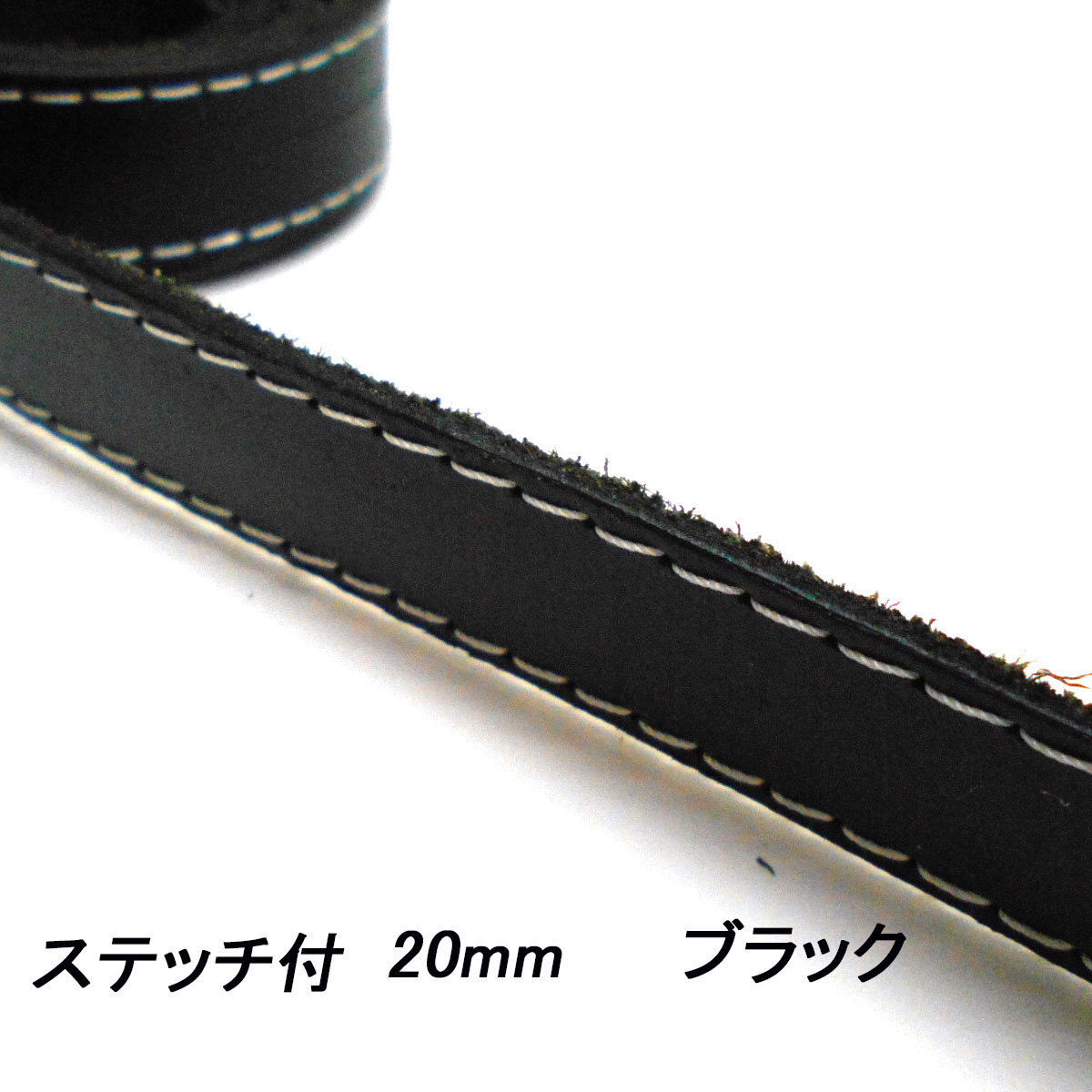 > レザークラフト 革テープ /ステッチ付/ 20mm /ブラック/1m単位 革レース レザーコード 皮 バッグ ベルト バッグ持ち手 首輪
