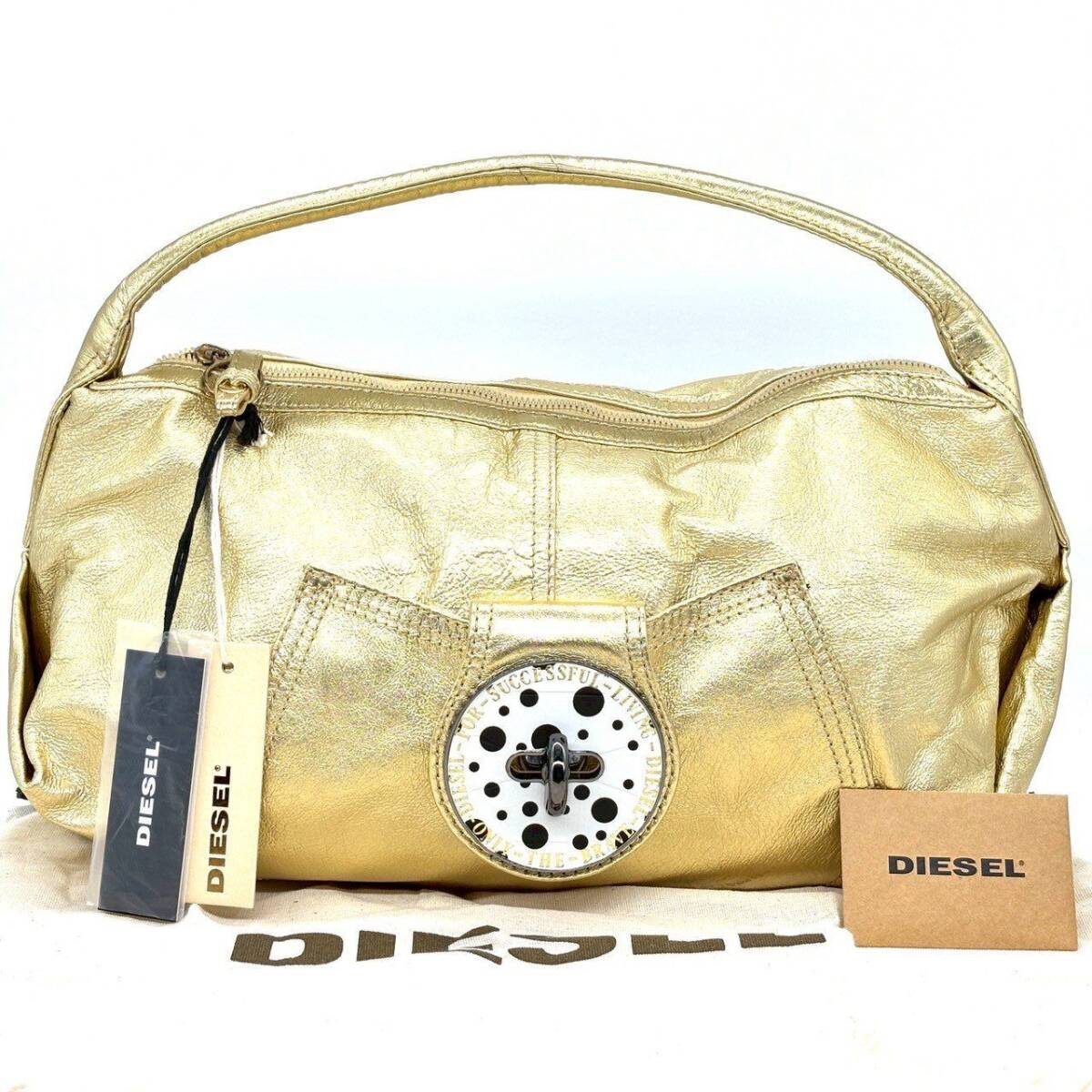 - 【タグ・保存袋付】 DIESEL ディーゼル ハンドバッグ トートバッグ A4 ターンロック メタリックレザー 渋谷限定 Y2K ゴールド