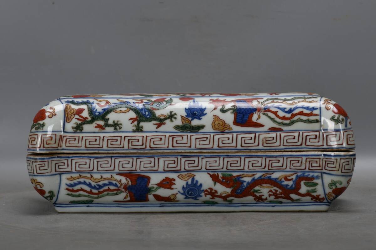 > ◆珍蔵◆中国古美術 大明万歴年製款 五彩 古陶磁 龍鳳紋長方寶盒 精品 細密細工造 置物 擺件 古賞物 時代物 A04