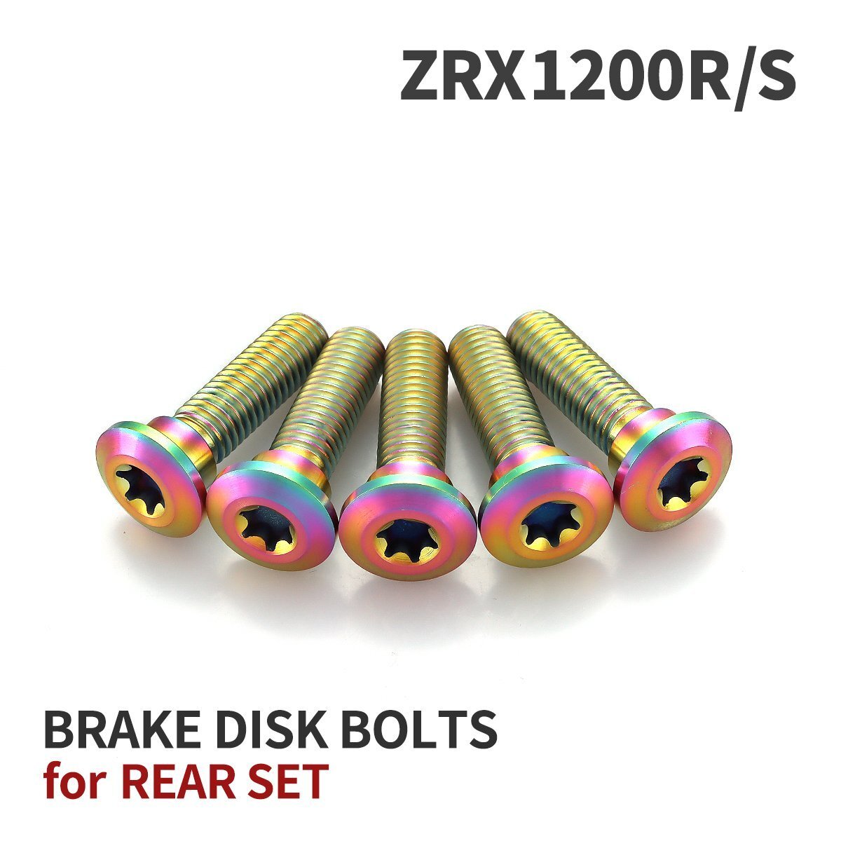 > ZRX1200R/S 64チタン ブレーキディスクローター ボルト リア用 5本セット M8 P1.25 カワサキ車用 レインボーカラー JA22022