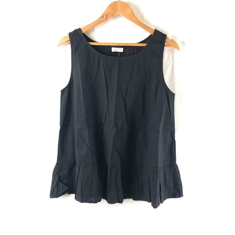 - my M カットソー ノースリーブ フレア 無地 綿100% タグ付き 黒 M-Lサイズ 2025082700141