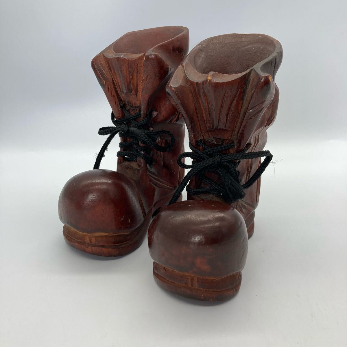 > M0909703N 木彫りブーツ 木彫り ブーツ型 木製 飾り ペン立て インテリア 置物 インテリア小物 アンティーク レトロ 当時物 中古品 現状品