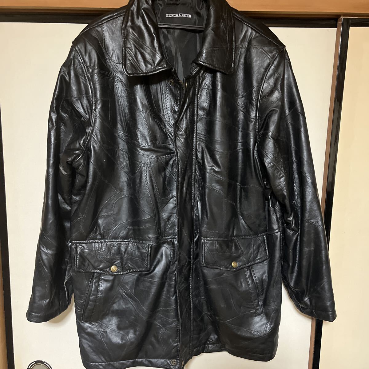 - BLACKLEDER 羊革パッチワークハーフコートsizeL 柔らかくて暖かい レザーコート本革 ブラック 羊革