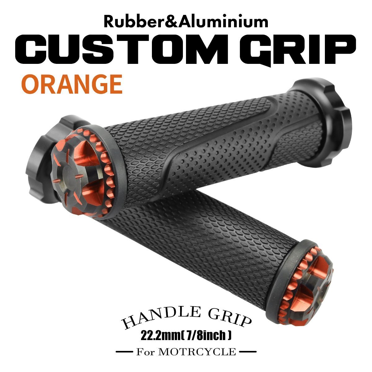 - バイク グリップ ラバー×アルミ削り出し ハイブリッドデザイン 左右セット バーエンド付き 22.2mmハンドル用 オレンジ SZ1051-O