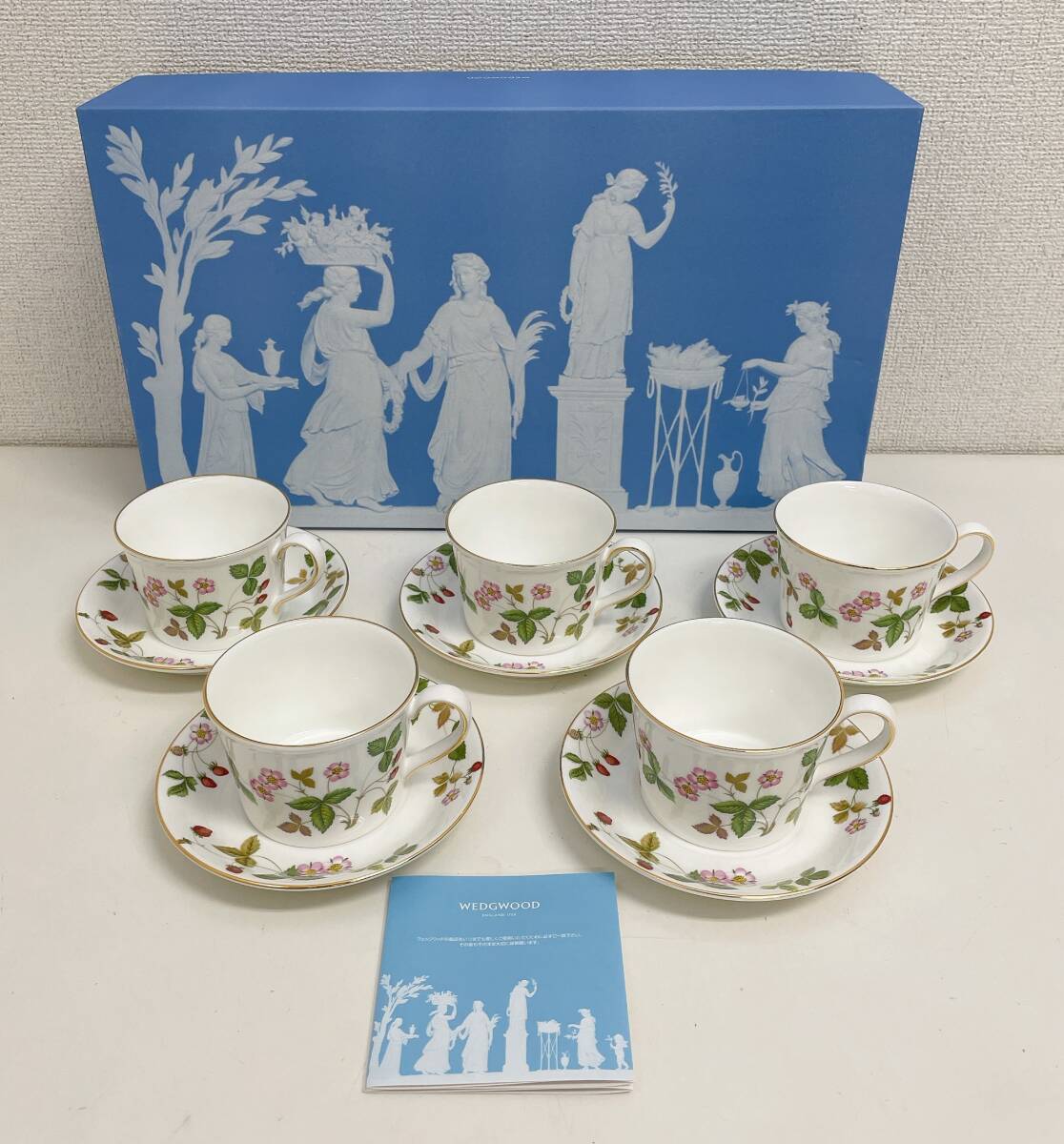 - 【Wedgwood (ウェッジウッド) ワイルドストロベリー ピオニー ティーカップ&ソーサー 5客セット】来客用/洋食器/おもてなし/A79-016