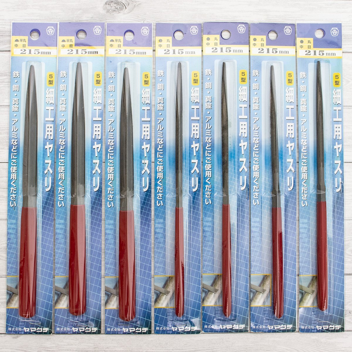 - ヤマグチ 細工用ヤスリ 5型 半丸 中目 215mm 3本 / 丸 中目 215mm 4本 / 計7本 未使用品 長期倉庫保管品 鑢