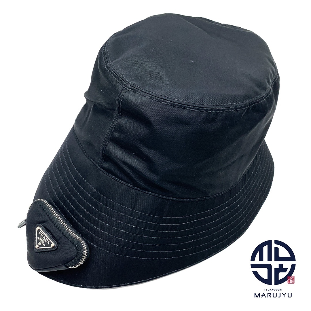 - PRADA プラダ RE-NYLON バケットハット 2HC282 黒 ブラック トライアングルロゴ ポーチ付き ナイロン ハット 帽子 ファッション 小物