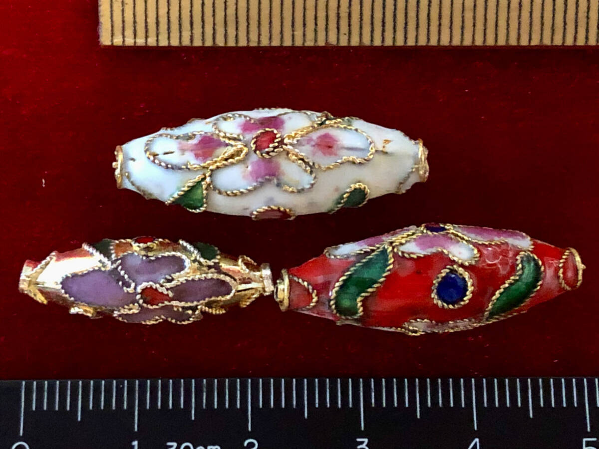 - ¶!¶ 有線七宝焼ワールド - 3色細長楕円大玉で1単位 ¶!¶ 約Φ7~10㎜×長22~27㎜大玉 金線に三色花 手作 手芸 工芸 インテリア 趣味