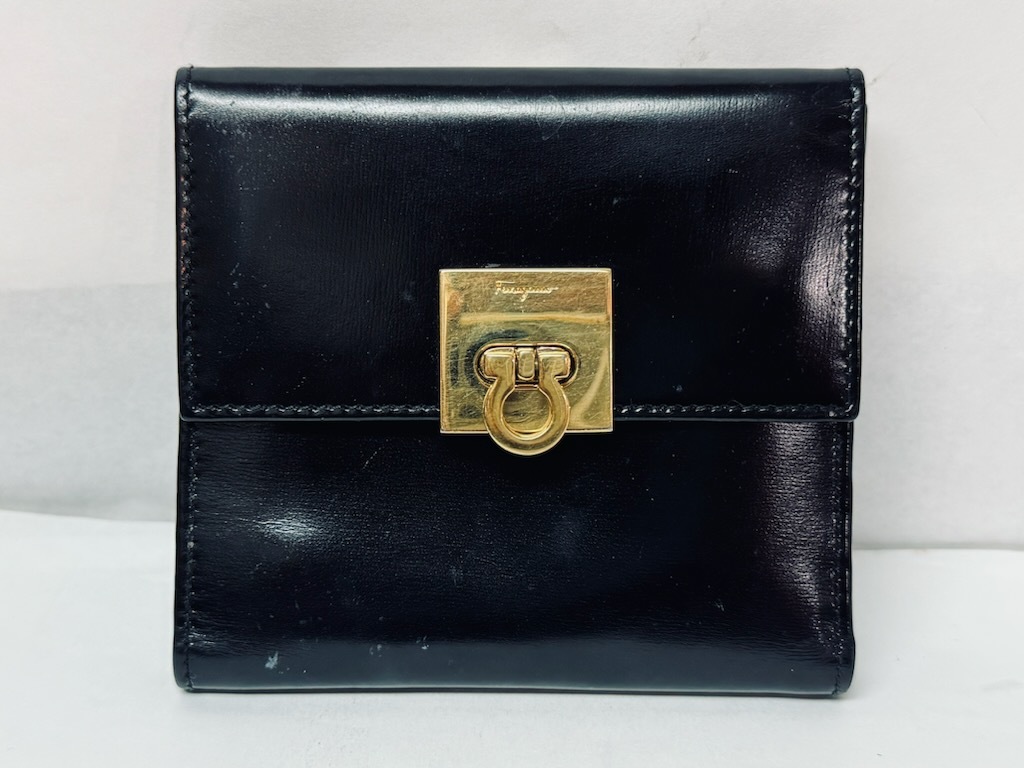 - Salvatore Ferragamo フェラガモ ガンチーニ レザー 二つ折り 財布 がま口 小銭入れ 札入れ ブラック 程度良 です