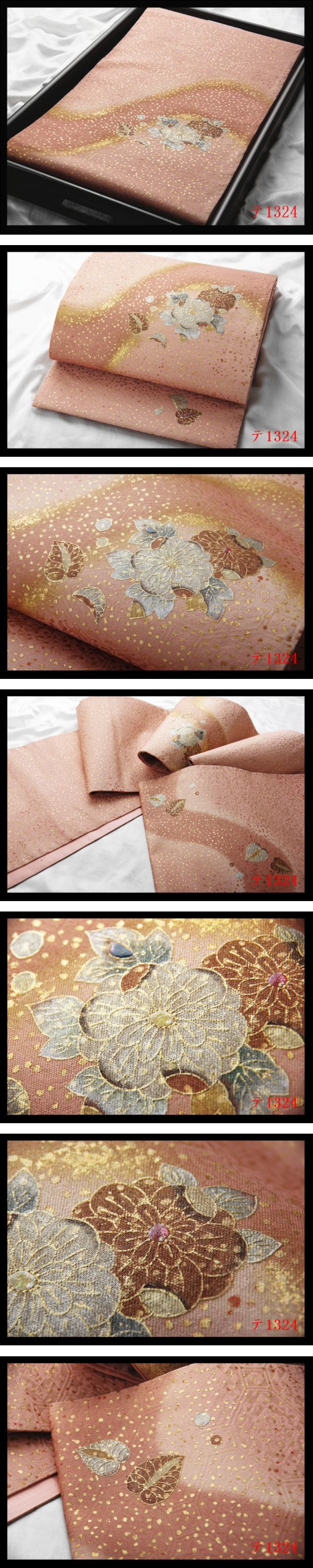 > 蔵【テ1324】西陣逸品 螺鈿 金彩 宍色 気品豊かに 正絹純金糸太鼓柄高級美術袋帯 ◇検◇簪着物名古屋帯和装小物帯締め
