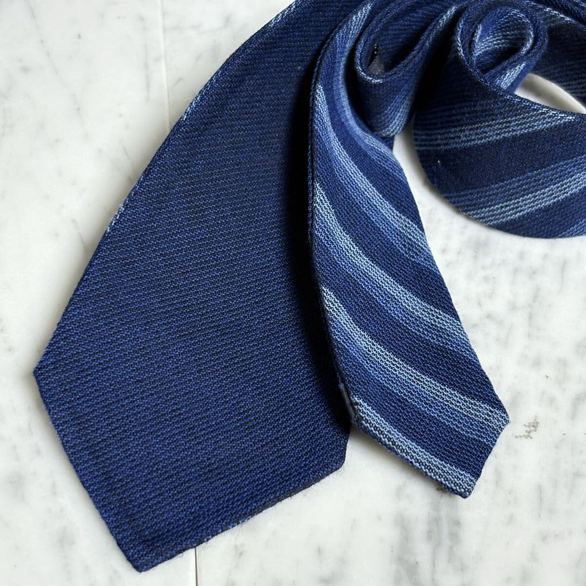 - 【美品】 999円~ ミラショーン ネクタイ ネイビー ストライプ 無地 リバーシブルタイ (B14)