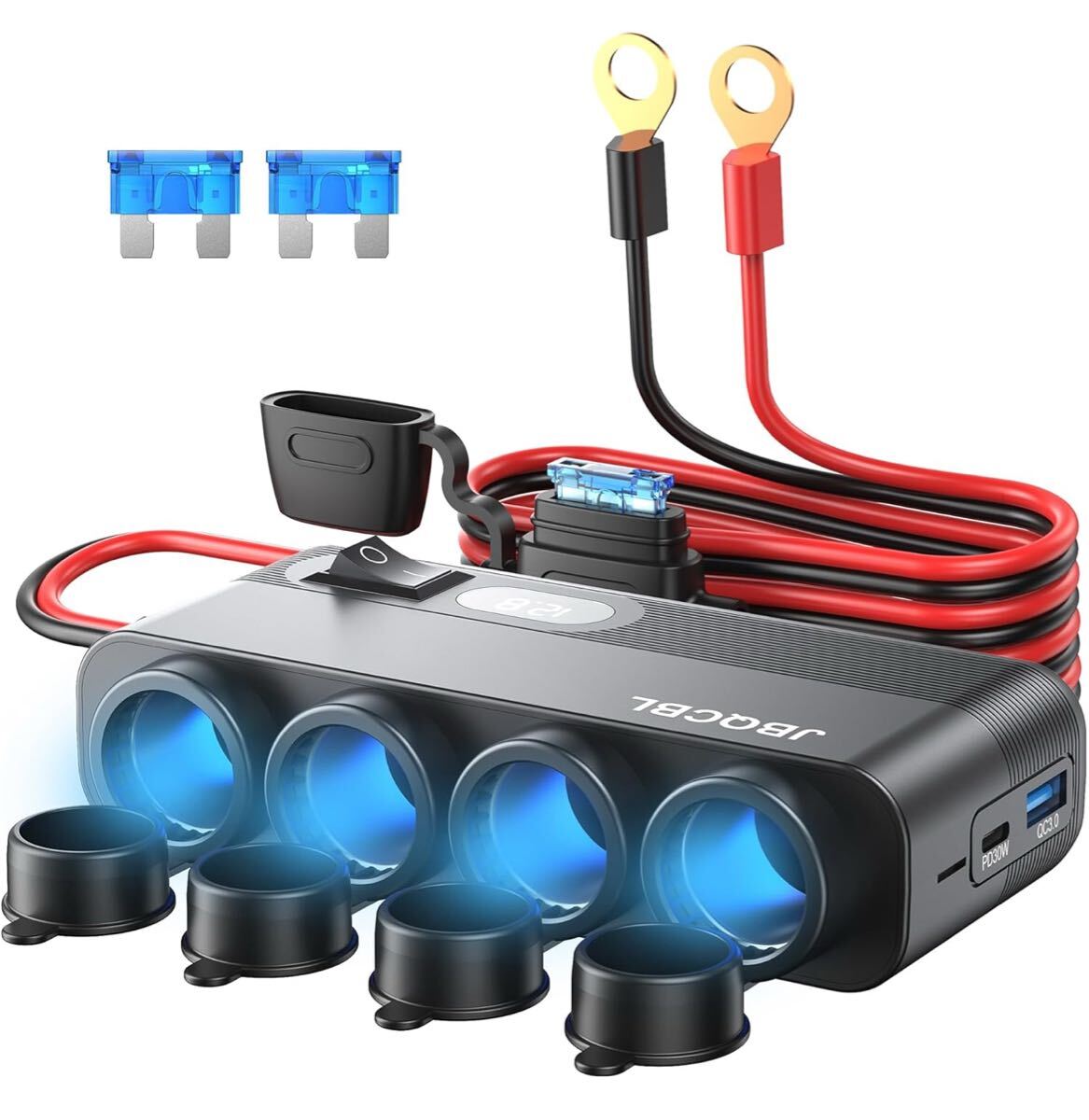 - 車載充電器 120W 12V/24V対応 急速充電 QC3.0 PD60W USBポート4つ シガーソケット2口 10FT長ケーブル トラック キャンピングカー ボート用