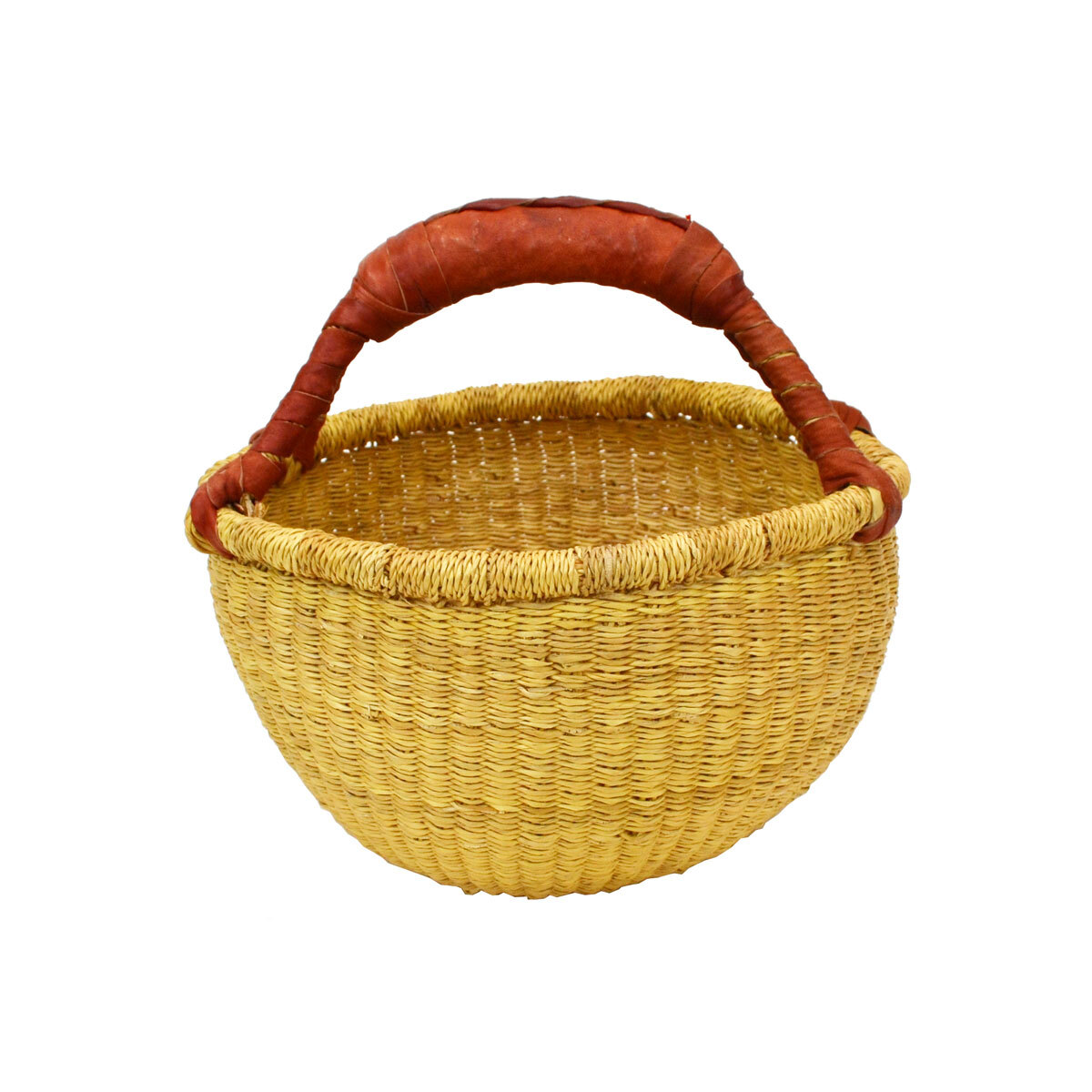 - グルスィバスケット ボルガ 無地 丸 S オレンジ 本革 籠
