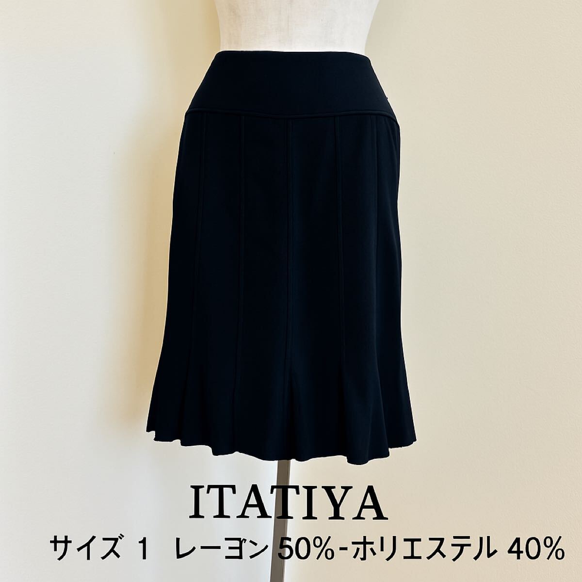 - 伊太利屋 黒 スリット入りフレアスカート 11号 L相当 ストレッチ
