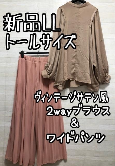 - 新品☆LLトールサイズ♪ヴィンテージサテン風ブラウス&ワイドパンツQ271
