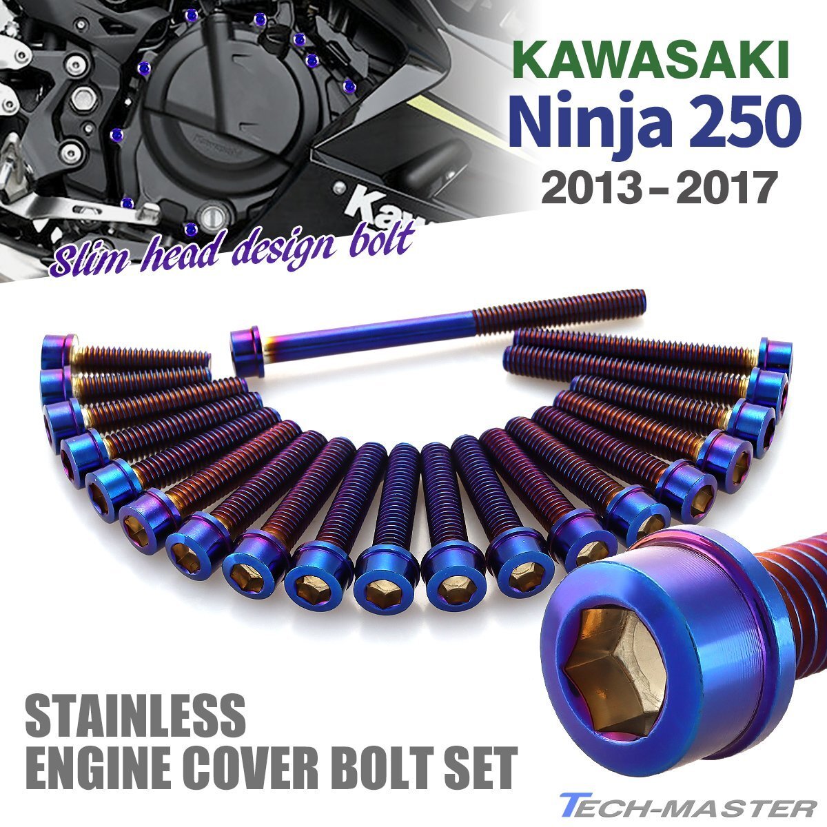 > ニンジャ250 13年~17年 エンジンカバー クランクケース ボルト 20本セット ステンレス製 スリムヘッド 焼きチタンカラー TB8363
