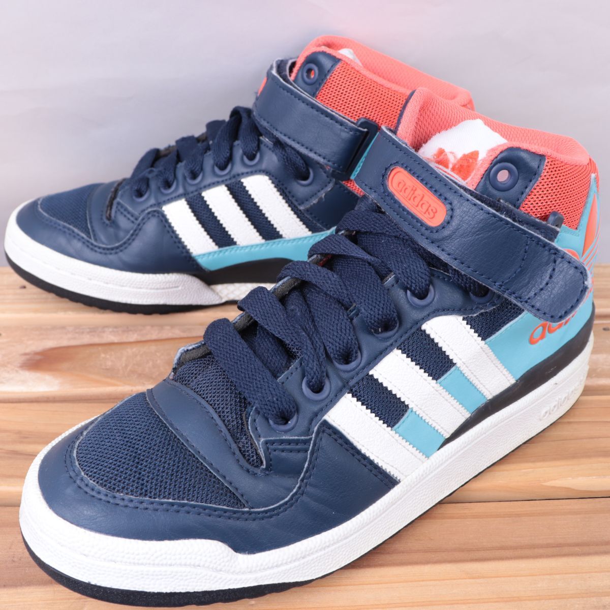 > z1810 アディダス フォーラム ミッド US8 1/2 26.5cm/ダークネイビー 紺 オレンジ 水色 adidas FORUM MID RS メンズ スニーカー 中古
