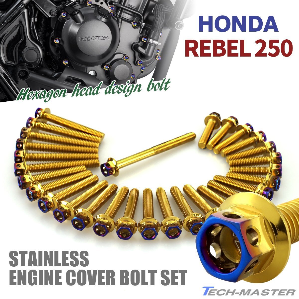 > レブル250 REBEL 2023年~ エンジンカバー クランクケース ボルト 29本セット ステンレス製 ゴールド×焼きチタンカラー TB12185