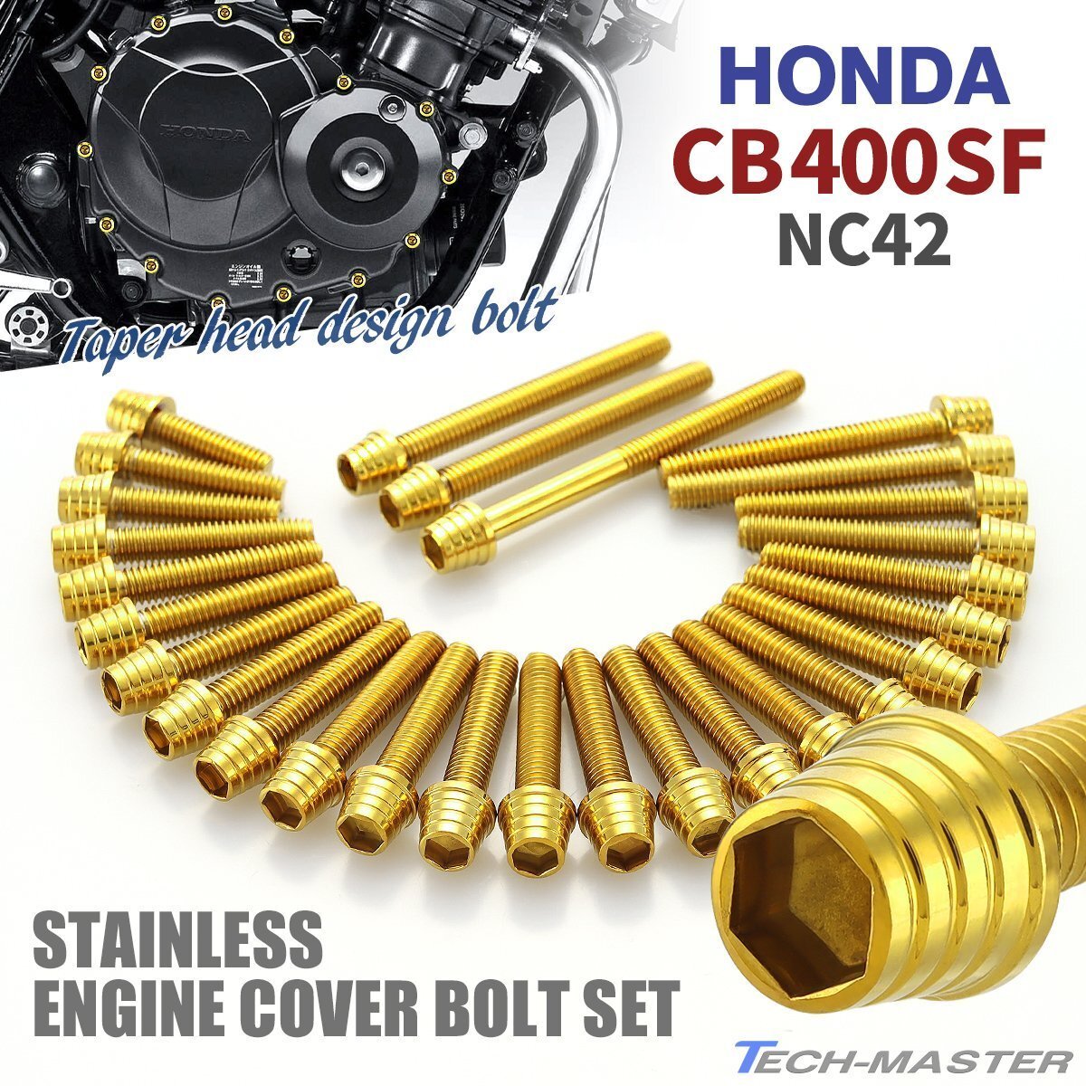 - CB400SF NC42 エンジンカバー クランクケース ボルト 28本セット ステンレス製 テーパーシェルヘッド ホンダ車用 ゴールドカラー TB6377