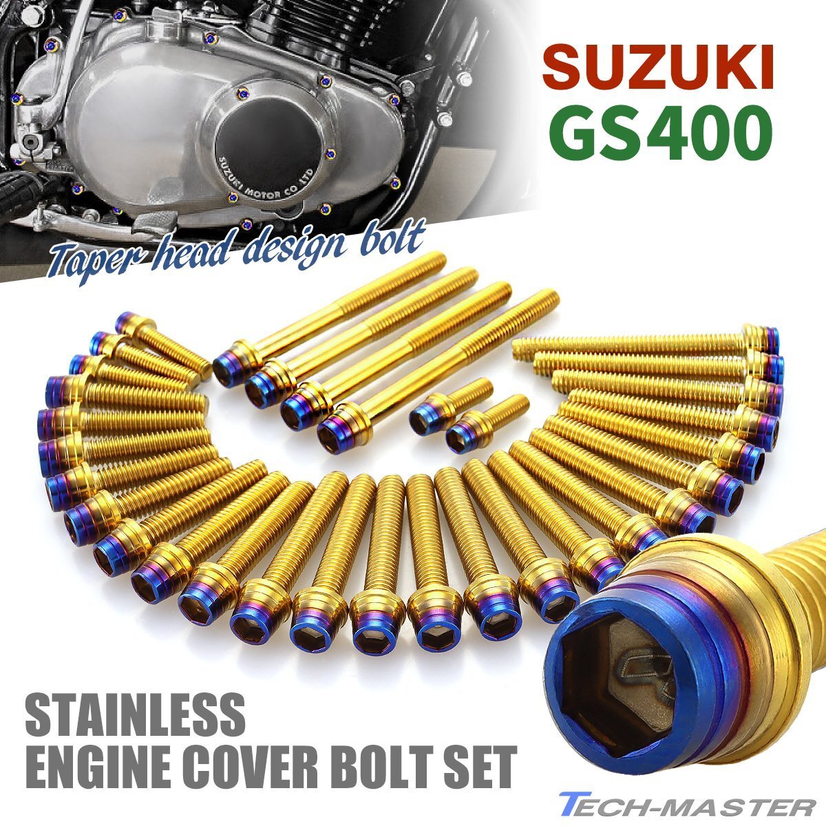 - GS400 エンジンカバー クランクケース ボルト 32本セット ステンレス製 テーパーシェルヘッド ゴールド×焼きチタンカラー TB9007