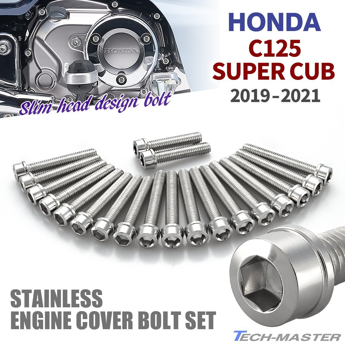 > スーパーカブ C125 2019年~2021年 エンジンカバーボルト 20本セット ステンレス製 スリムヘッド シルバーカラー TB6736