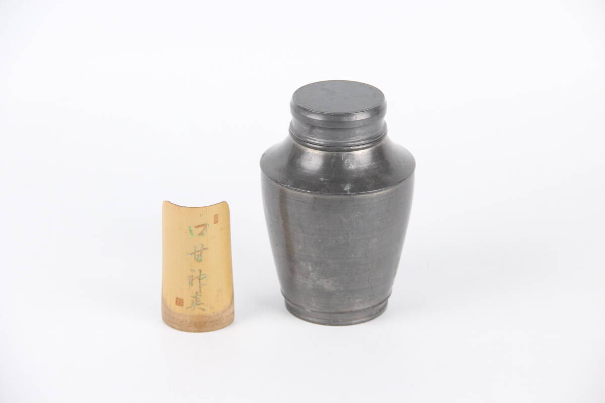 - 中国美術 洋換造 古錫 茶入 茶壺 茶合付き 茶道具 時代物 ES1-5