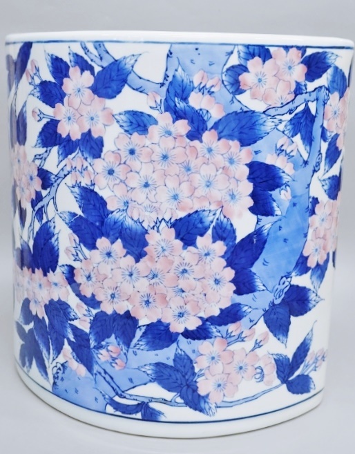 - 傘立て 有田焼 花舟作 紫陽花 花柄 青色 アンブレラスタンド おしゃれ インテリア 傘立て 置物 飾り物 傘入れ 家具 陶器 高さ約30.5cm 玄関