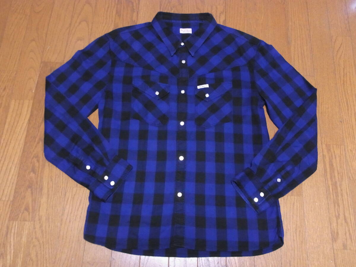 > 259-32/日本製/THE FLAT HEAD/フラットヘッド/ブロックチェック/バッファローチェック/ウエスタンシャツ/46/ブルー×ブラック