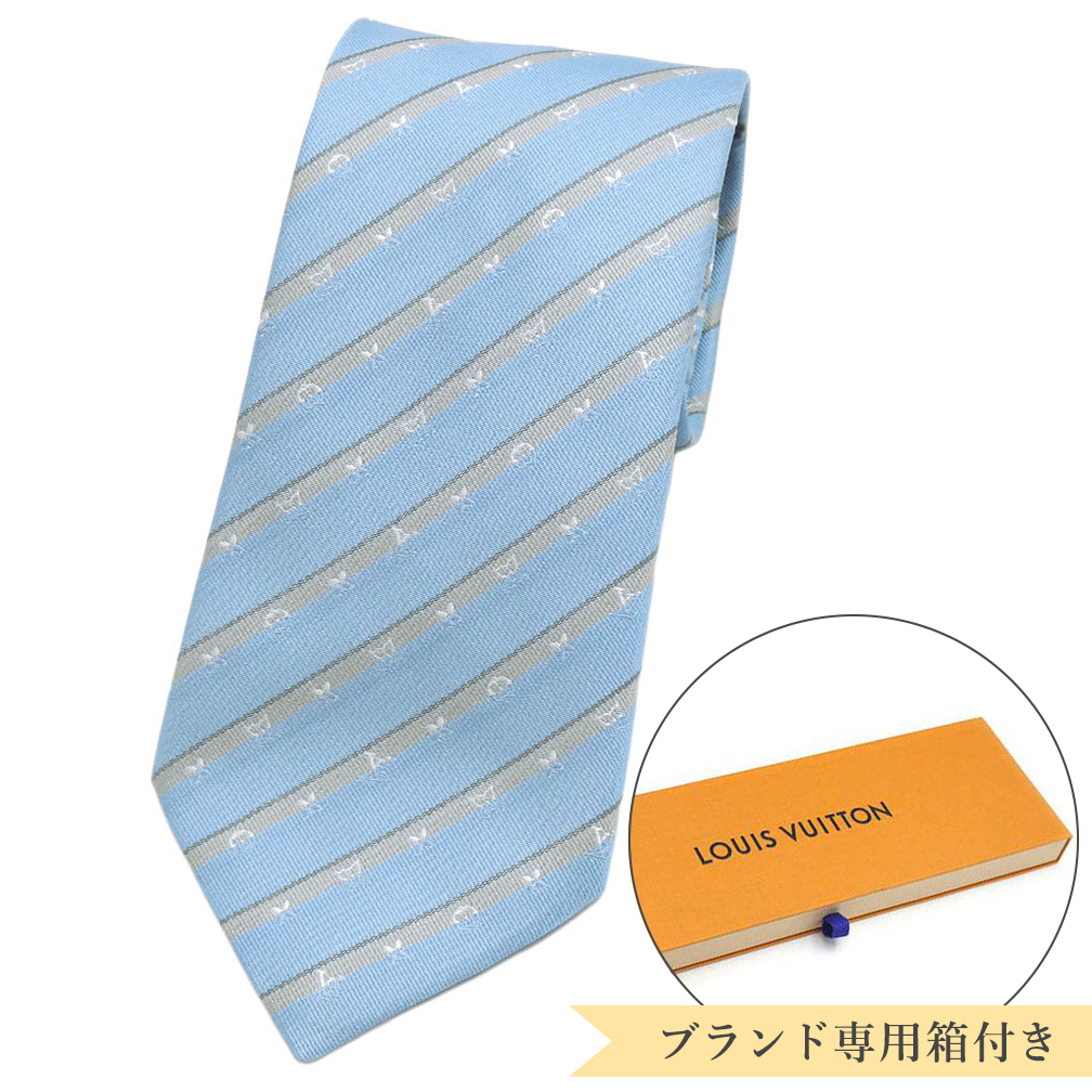 > 極美品 ルイヴィトン ブランド ネクタイ LOUIS VUITTON M71727 高級 シルク クラヴァット・モノグラム リボン ストライプ ブルー 水色 LV