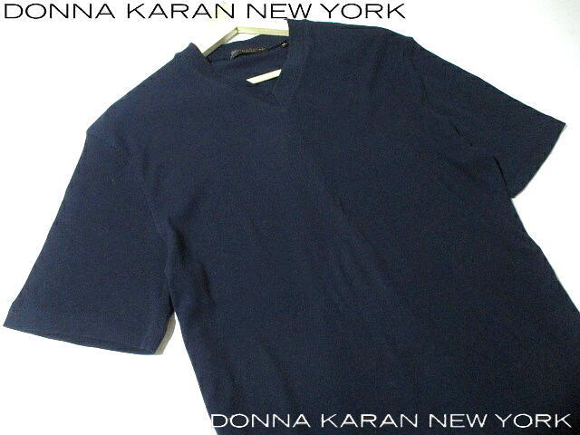 > 美品■ 即決! ダナキャラン ニューヨーク DONNA KARAN Vネック 半袖ニット カットソー 紺 ネイビー 無地 Mサイズ DKNY