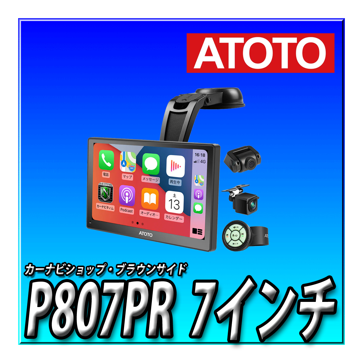 - ATOTO P807PR 7インチポータブルナビ P8プロ (P8 本体+前後カメラ+リモコン付き) Linux PND 新型カーナビ