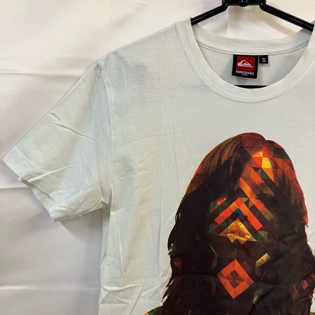 > A39 クイックシルバー S アメリカ古着 コットン プリント 半袖Tシャツ ホワイト Quiksilver メンズ