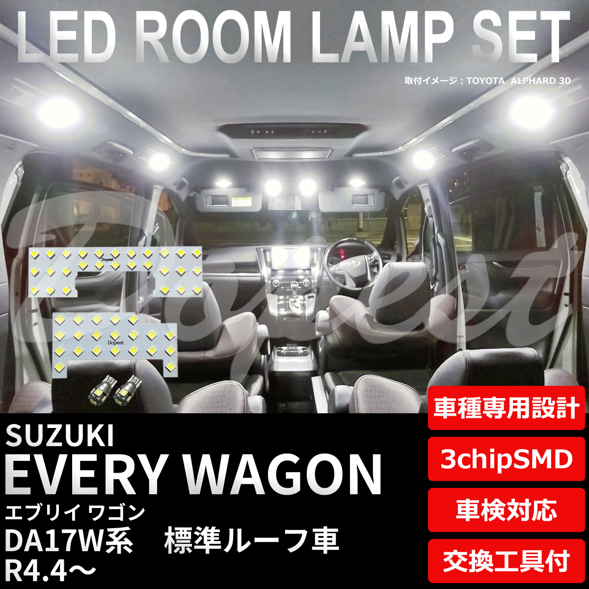 - エブリイ ワゴン LEDルームランプセット DA17W系 標準ルーフ車専用 室内灯 6500K純白 専用設計 車検対応 車内灯