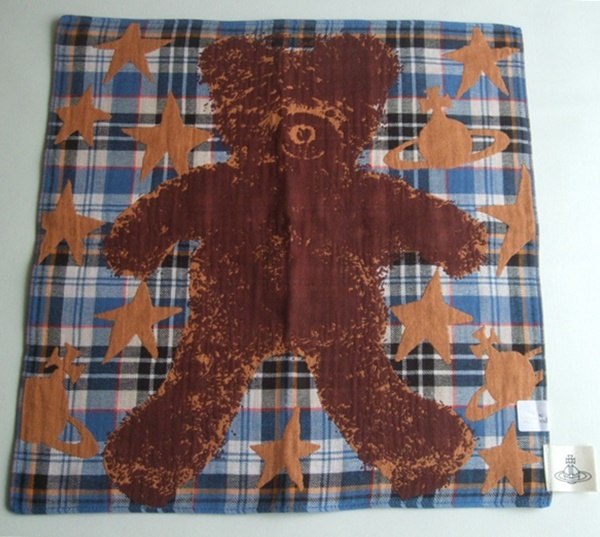 - Vivienne Westwood ヴィヴィアン・ウエストウッド テディベア チェック Teddy bear くま柄 ガーゼ ハンカチ 未使用品 百貨店 オーブ 星