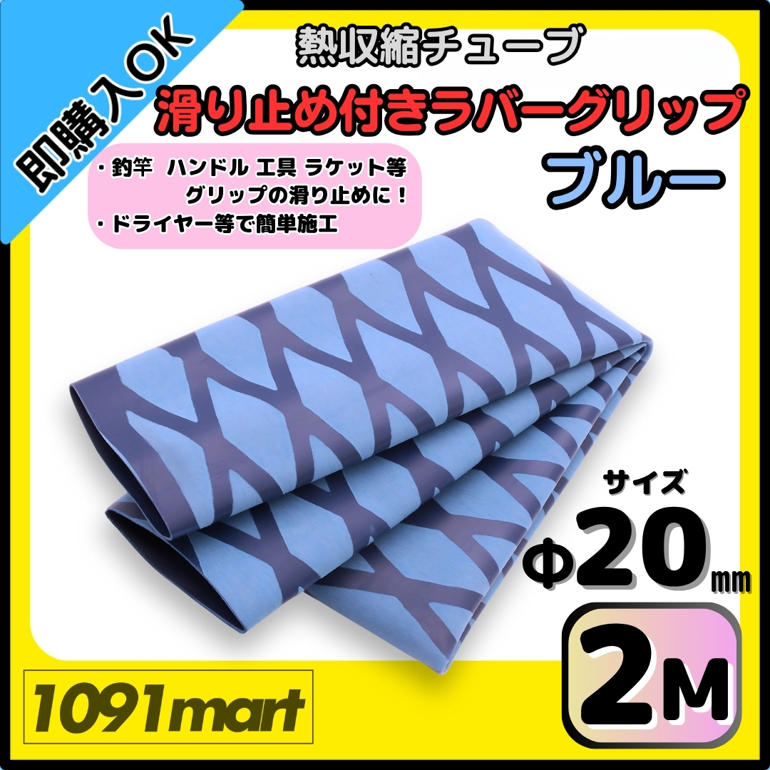 - 【送料無料】熱収縮チューブ ラバーグリップ Φ20㎜ 2m (100㎝×2本) ブルー 滑り止め加工 グリップの補強に 釣竿 工具 ラケット