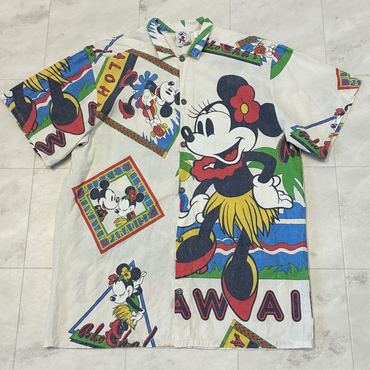 - 90s USA製 Mickey&Co. MICKEY&MINNIE HAWAIIAN PARADISE ビンテージ アロハシャツ