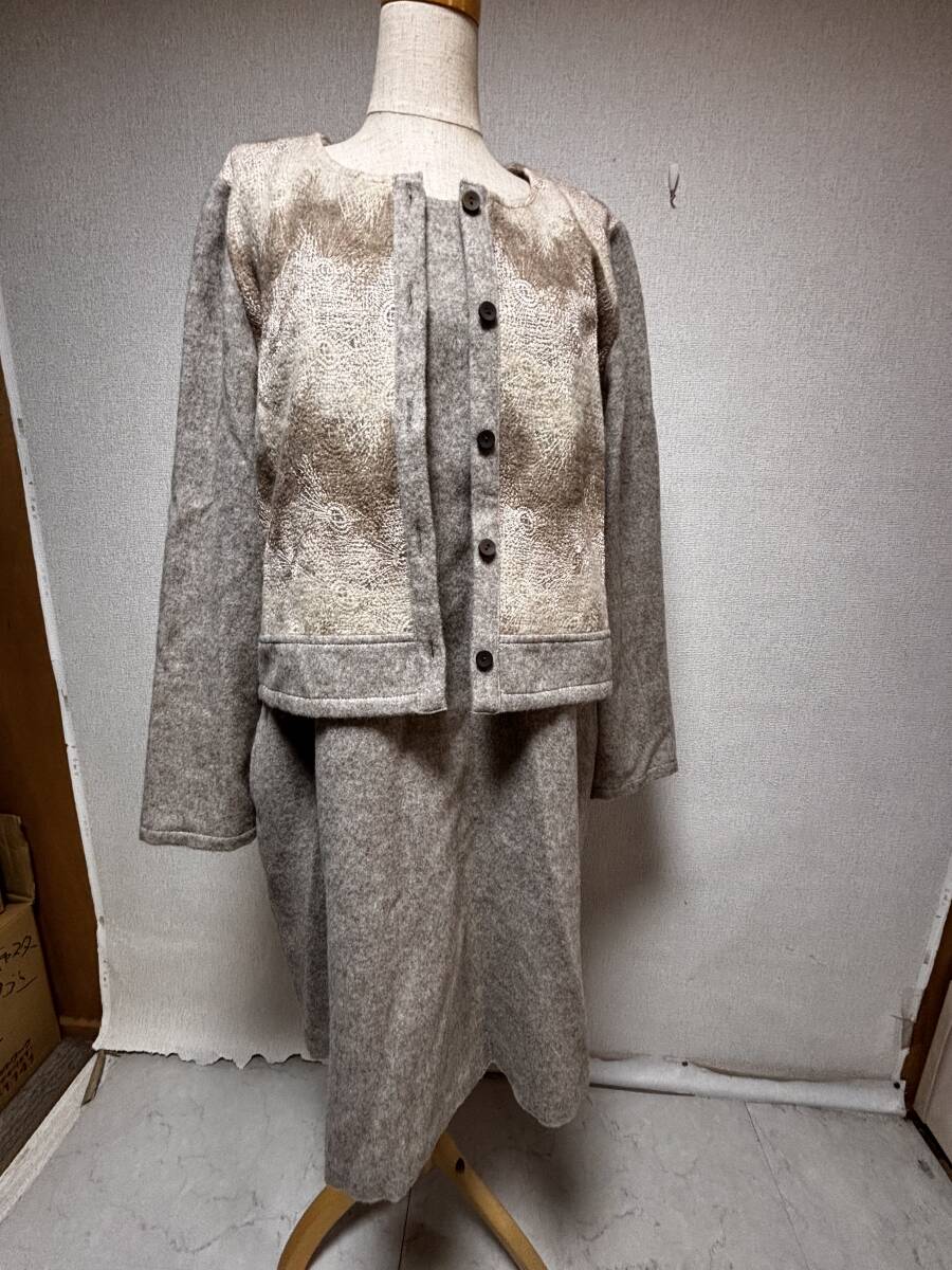 - d4696◆デイベリー diberry ウールセットアップ ワンピース&ボレロ42ベージュ