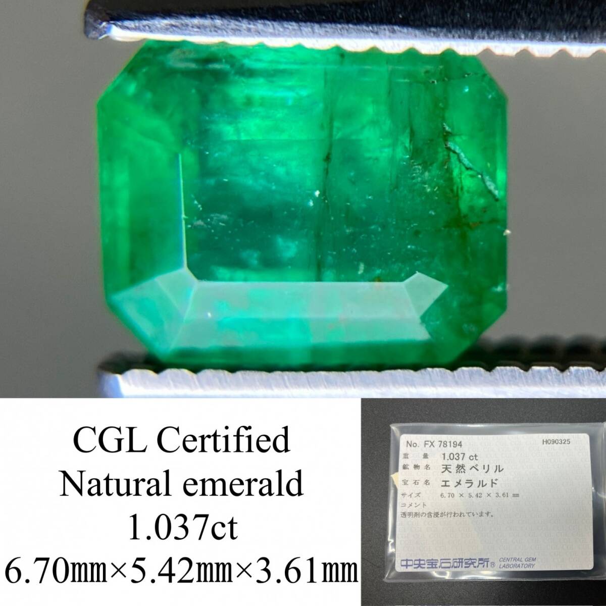 > エメラルド 天然 1.037ct 中央宝石ソーティング付き 6.70×5.42×3.61 ルース( 裸石 ) 6724YY