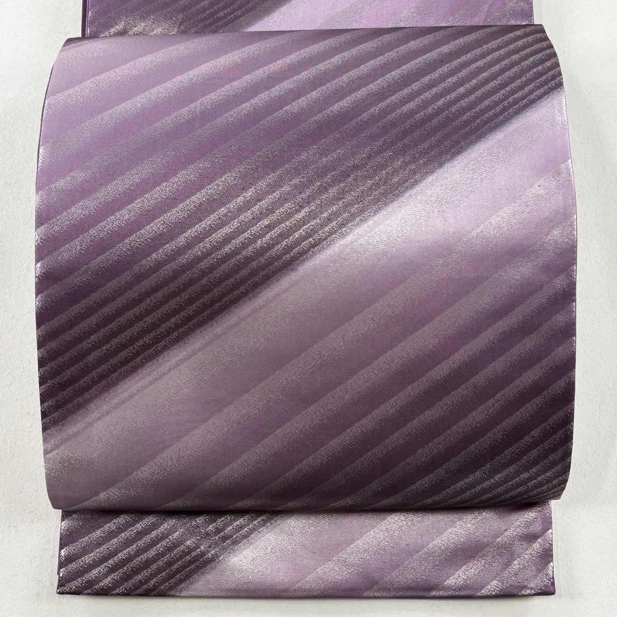 > 袋帯 美品 秀品 斉藤三才 落款 斜縞 箔 紫 六通 正絹 【中古】